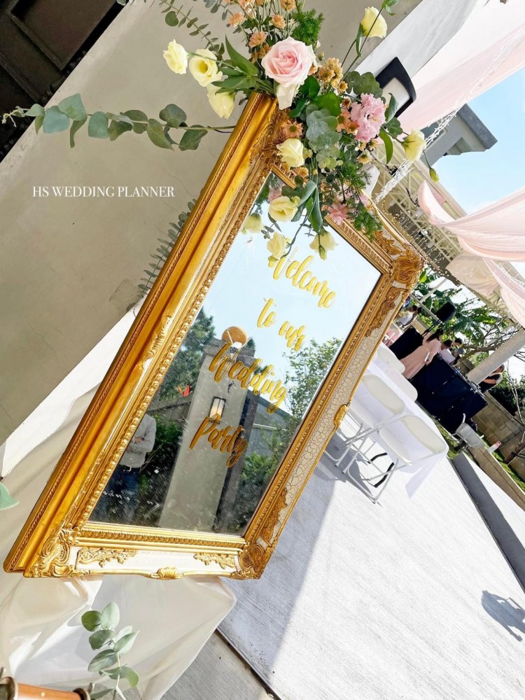 服務項目:主持企劃、美式帳篷搭設、婚禮花藝設計、迎賓拍照區佈置、西式長桌、桌心、椅子提供、音響服務
