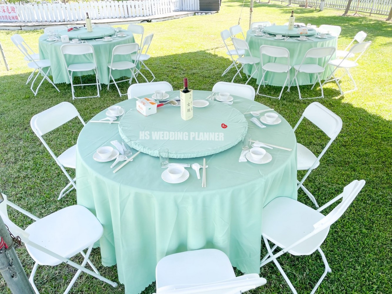 服務項目: 棚子、婚禮花藝佈置、音響服務、桌巾、椅子